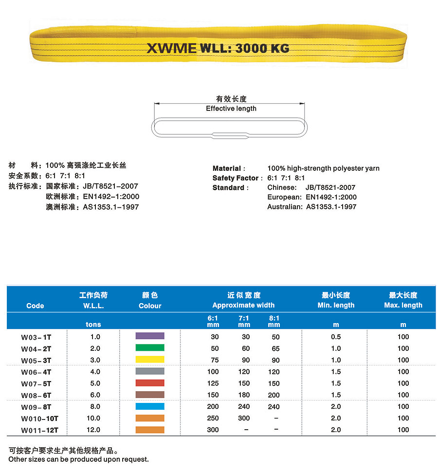 合成纖維吊裝帶(以下簡稱吊裝帶)為軟吊裝帶,采用非金屬原料,屬吊裝行業中鋼繩、鏈條的換代產品,比同類金屬繩相對輕便。能解決實際吊裝過程中大噸位、小吊裝空間的吊裝難題。吊裝帶有輕便、使用壽命長、減震性能好、不導電、不易腐蝕、保護被吊物品不被刮傷等特點。多次的斷裂試驗表明,吊裝帶相對于金屬繩鏈產生的反向傷害幾乎為零。吊裝帶采用國際標準色來區分承載噸位,在使用過程中,吊帶裝上的標簽磨損后,可能過吊裝帶外套的顏色來識別承重重量。合成纖維吊裝帶在國際上起步較早,至今已有著五十多年的應用歷史,在經過二十多年的國內推廣應用,以其獨有的顯著優勢,早許多行業正逐步替代鋼絲繩索具和鏈條索具。