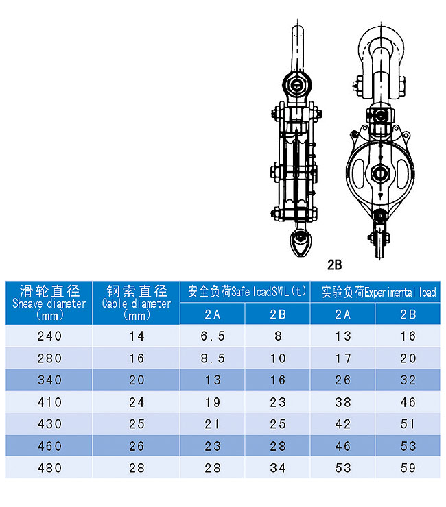 滑車按輪數的多少分為單門滑車,雙門滑車和多門滑車。按滑車與吊物的連接方式可分為吊鉤式滑車,鏈環式滑車,吊環式滑車和吊架式滑車四種。一般中小型的滑車多司于吊鉤式、鏈環式和吊環式,而大型滑車采用吊環式和吊梁式。按輪和軸的接觸不同可分為輪軸間裝滑動軸承及滾動軸承兩種。按夾板是否可以打開來分,有開口滑車和閉口滑車。開口滑車的夾板是可以打開的,便于裝繩索,一般的都是單門滑車,它常用于扒桿底腳處作導向滑車用。滑車按使用的方式不同又分為定滑車和動滑車。使用方便,用途廣泛,可以手動,機動。主要用于工廠、礦山、農業、電力、建筑的生產施工,碼頭、船塢、倉庫的機器安裝,貨物起吊等。