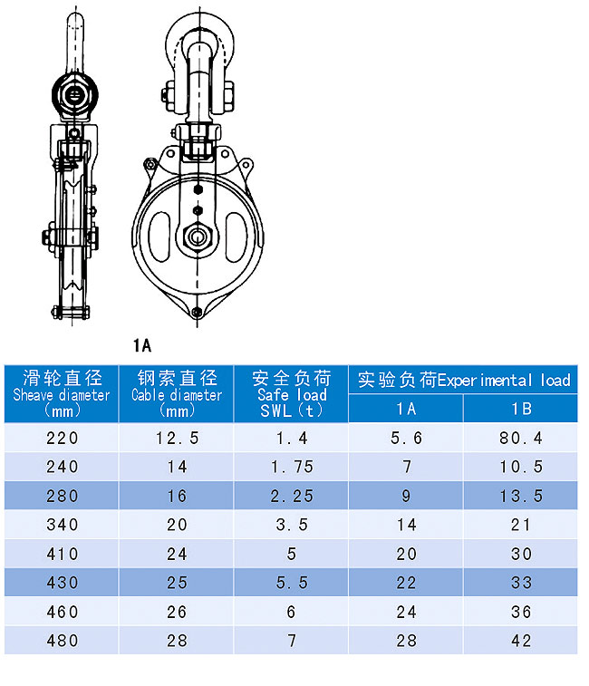 滑車按輪數的多少分為單門滑車,雙門滑車和多門滑車。按滑車與吊物的連接方式可分為吊鉤式滑車,鏈環式滑車,吊環式滑車和吊架式滑車四種。一般中小型的滑車多司于吊鉤式、鏈環式和吊環式,而大型滑車采用吊環式和吊梁式。按輪和軸的接觸不同可分為輪軸間裝滑動軸承及滾動軸承兩種。按夾板是否可以打開來分,有開口滑車和閉口滑車。開口滑車的夾板是可以打開的,便于裝繩索,一般的都是單門滑車,它常用于扒桿底腳處作導向滑車用。滑車按使用的方式不同又分為定滑車和動滑車。使用方便,用途廣泛,可以手動,機動。主要用于工廠、礦山、農業、電力、建筑的生產施工,碼頭、船塢、倉庫的機器安裝,貨物起吊等。