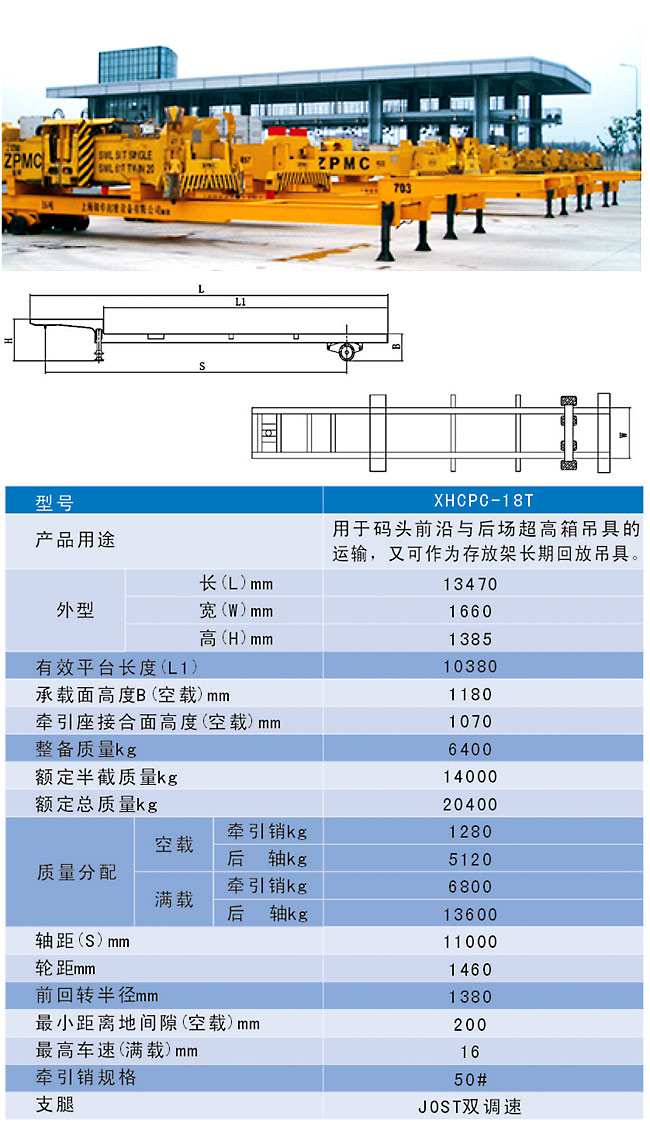 1.4XHSPC集裝箱超高箱吊具運輸平板車